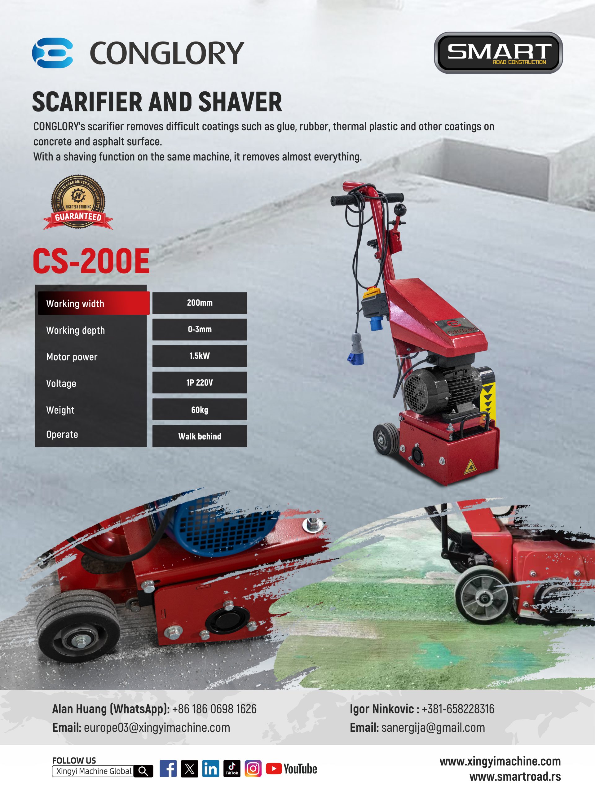 CS-200E je savršen izbor za izvođače koji traže kompaktnu, ali moćnu glodalicu za pripremu betonskih podova u industrijskim, komercijalnim i renovacionim projektima. Kao deo Conglory linije, ova mašina kombinuje kinesku inženjersku preciznost sa praktičnim rešenjima za svakodnevni rad na terenu.